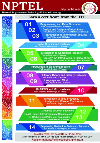 (National Program for Technical Enhance Learning) which contain the video lecture of IIT professors in our “Sai Ganapathi Engineering College” a number of NPTEL courses are available.