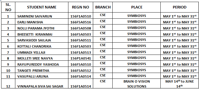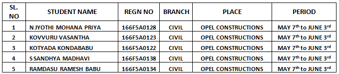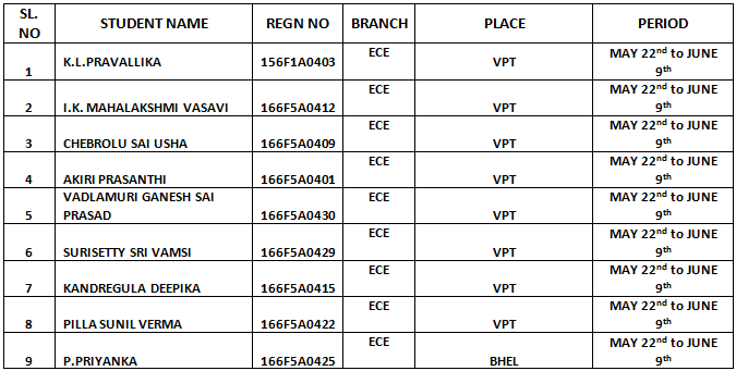 The Students done the internship in the "VPT" & "BHEL" industry on May 22nd to June 9th 2020 |